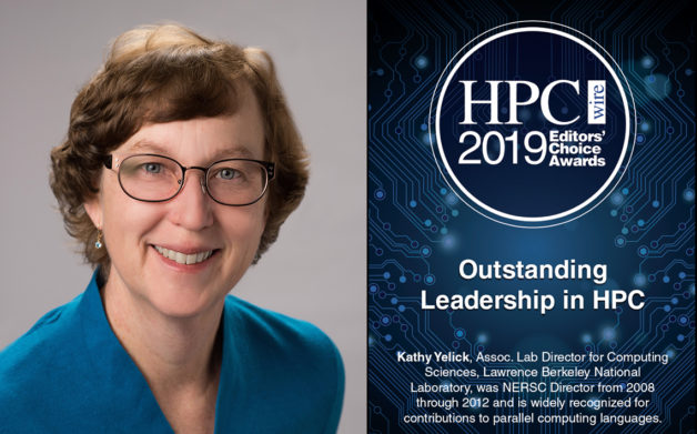 Katherine Yelick has been honored by HPCwire as their Editor’s Choice for Outstanding Leadership in high-performance computing (HPC). The award was presented at the 2019 International Conference for High Performance Computing, Networking, Storage, and Analysis (SC19), in Denver, Colorado. https://newscenter.lbl.gov/2019/11/18/yelick-recognized-for-hpc/