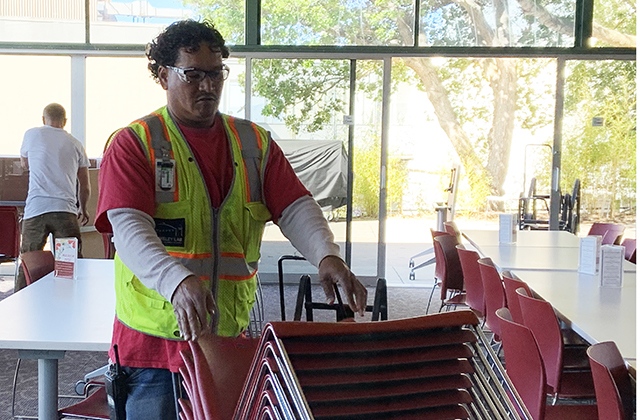 Some tables and chairs have been removed from the cafeteria to facilitate social distancing. Disinfecting wipes were placed on tables. The coffee bar will no longer allow personal cups and mugs for beverage orders. The suggestions came from participants in the virtual town hall on Thursday.