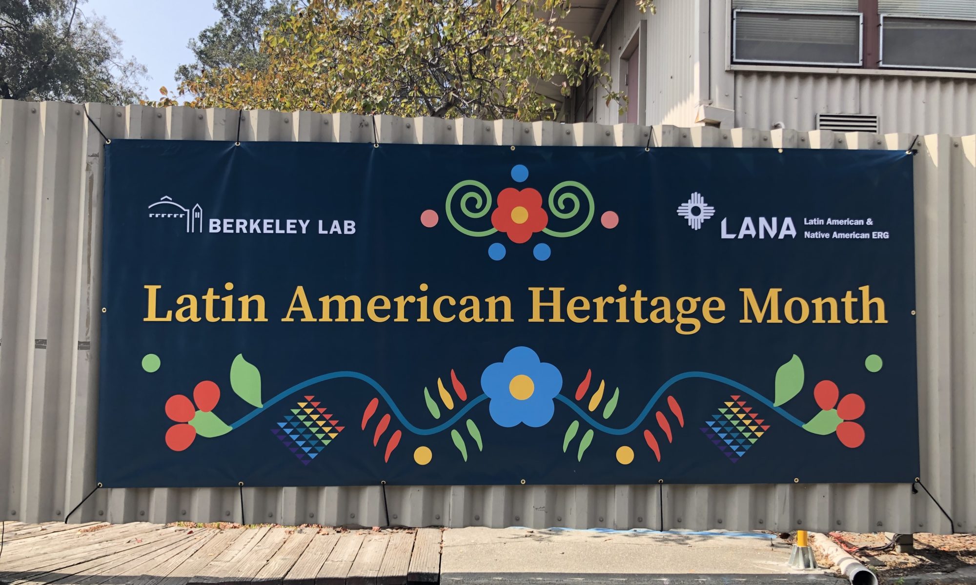 A beautiful banner in celebration of Latin American Heritage Month was raised at the Lab Tuesday. The sign was designed by Eduardo De Ugarte from the Creative Services Office. “I was inspired by traditional North and Central American textiles and the spirit of unity, community, and visual harmony.” https://www.lbl.gov/wp-content/uploads/2020/09/LANA-Banner-at-Lab-scaled.jpg