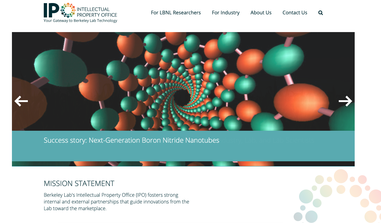 Check out the Intellectual Property Office’s new website, which allows easier searches of the Lab’s inventions, the latest news, the right staff contacts to help you with disclosures, licensing questions, NDA/MTA requests, and more. https://ipo.lbl.gov/