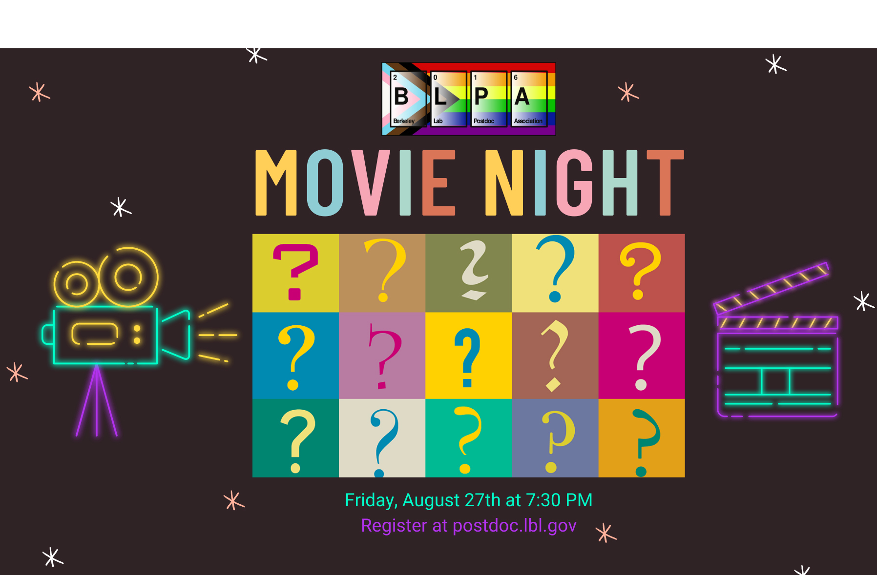 Voting is open now for the Berkeley Lab Postdoc Association’s movie night on Friday, August 27 at 7:30 p.m. The chosen movie will be announced on BLPA’s website next Wednesday, and the link to the party will be sent on Friday at 7:00 pm. Everyone is welcome to participate. https://docs.google.com/forms/d/e/1FAIpQLSf9zyJgcenZWXejJiACNYEeeCo2N_GiG3icY2i8Gsh_DoCsFQ/viewform