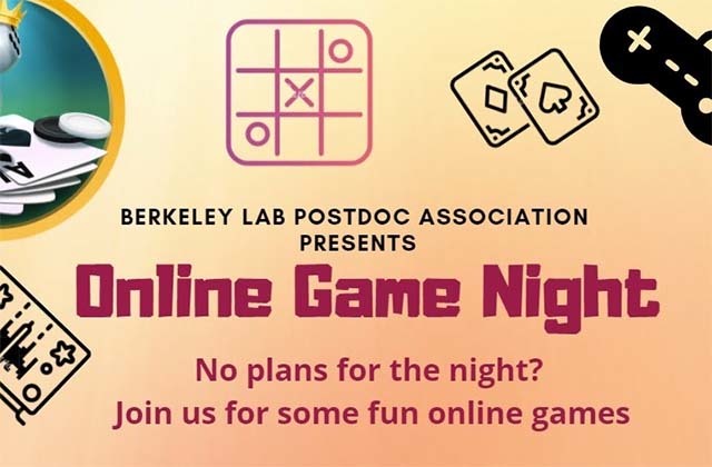 Berkeley Lab Postdoc Association invites everyone to the monthly virtual game night on Wednesday, Dec. 15 at 7:30 p.m. Sign up to play your favorite games with postdocs and friends. All the games are simple to play, no prior experience required. Friends and family are welcome. https://docs.google.com/spreadsheets/d/1gjeBqMp0GlV0T1oJmQGC-u3LEMNCPJEzyPe8T9FfIiA/edit#gid=0