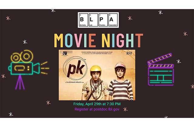 Please join the April edition of the monthly Netflix Party with Berkeley Lab Postdocs and friends on Friday, April 29, at 7:30 p.m. We will watch and discuss “PK” together. Sign up in advance to receive the watch party link, which will be sent on Friday at 7 p.m. https://forms.gle/GDzpaVwgVqhrMLwG7